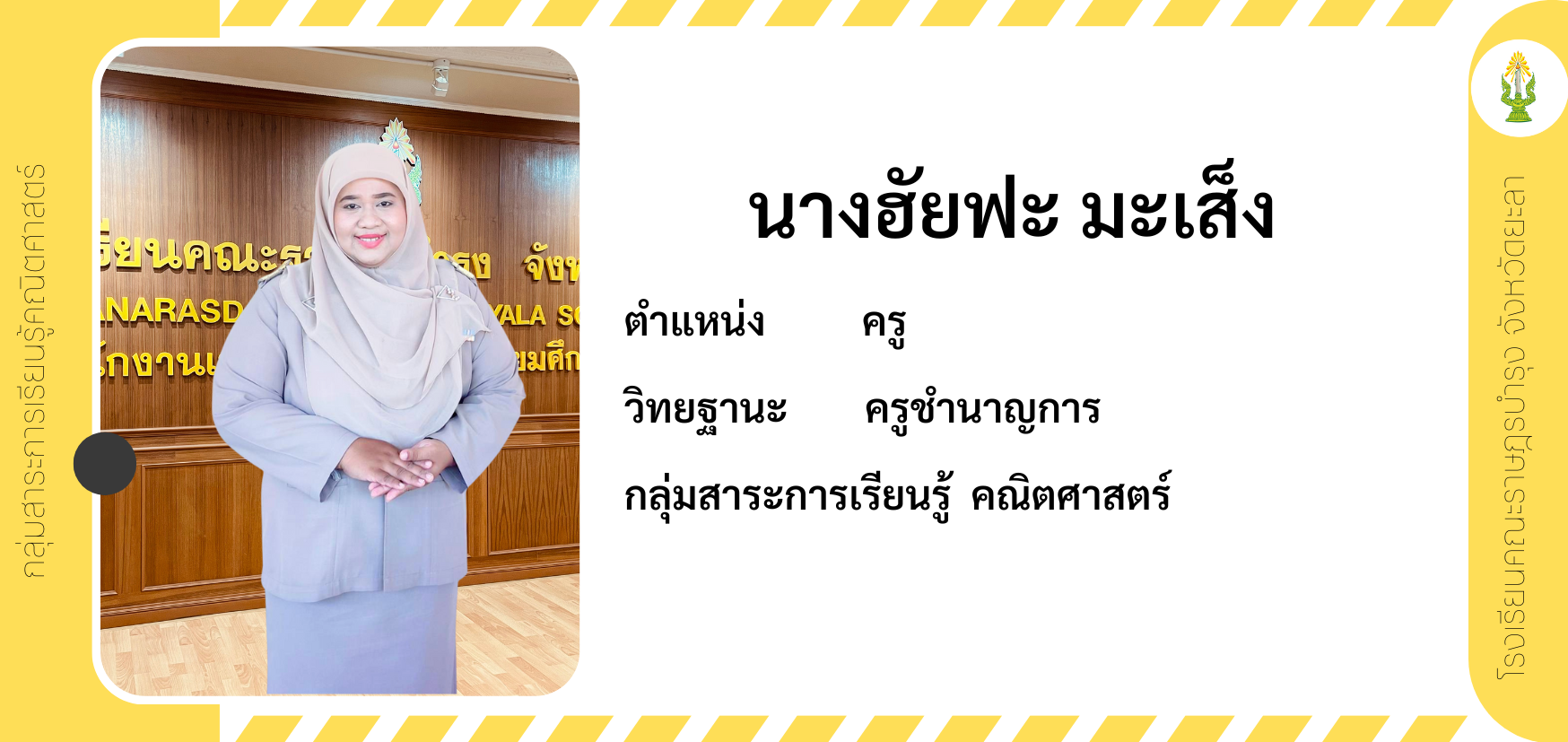 ครูและบุคลากรกลุ่มสาระการเรียนรู้คณิตศาสตร์ โรงเรียนคณะราษฎรบำรุง จังหวัดยะลา